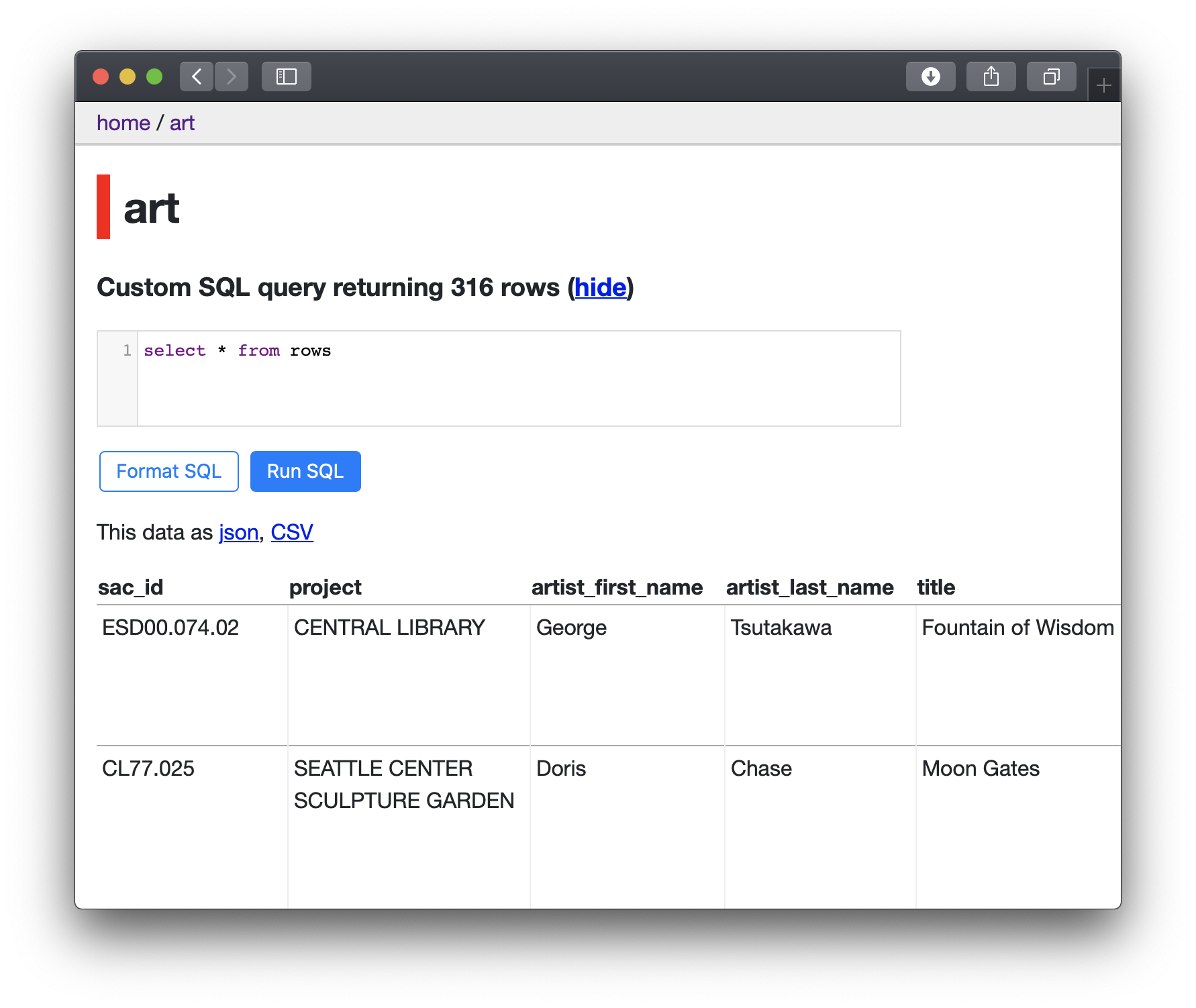 After a successful update, Datasette should be available on the listener’s IP address and port: